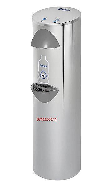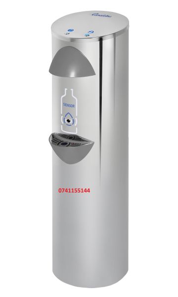 Pentru a umple o sticlă (sau o ceașcă), puneți-o în fața senzorului frontal și se va aprinde; apoi selectați apa dorită, mișcându-vă degetul aproape (modelele acționate de senzor) sau apăsând butonul. Pentru siguranță, apa nu va fi distribuită decât dacă există o sticlă (sau o ceașcă) în fața senzorului. Tavă de picurare de mare capacitate ușor de îndepărtat. Igienă îmbunătățită, deoarece gura de scurgere este acoperită și separată de butoane. Mai înalt pentru o utilizare mai ergonomică. Bobină din oțel inoxidabil, sistem de răcire directă, mai eficient și mai igienic. Temperatura apei reci poate fi reglată de termostat.
