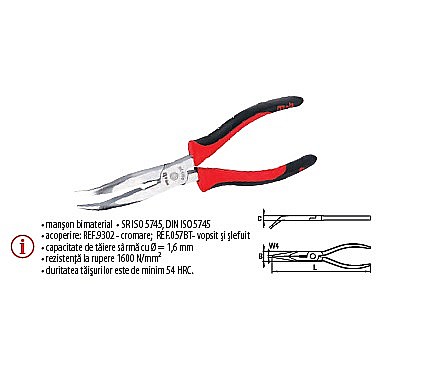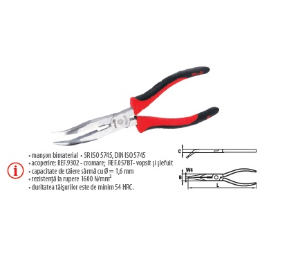 Cleşti BT cu vârf semirotund îndoit şi tăiş, manşon bimaterial 200